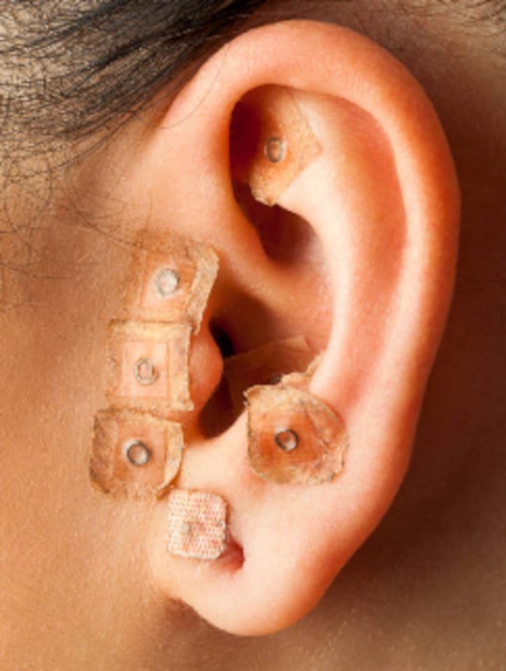 - AURICULOTERAPIA es un complemento a la Acupuntura que funciona muy bien para las personas que padecen tanto dolor como ansiedad. Este método de tratamiento consiste en poner parches de pequeñas y finísimas agujas en la oreja para estimular el sistema nervioso. Es totalmente indoloro y junto con las sesiones de acupuntura ayuda a bajar los niveles de cortisol, la principal hormona del estrés y la ansiedad ante el dolor.